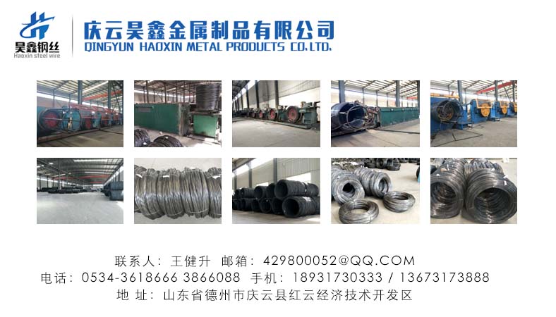 慶云昊鑫金屬制品有限公司坐落在山東省德州市慶云縣紅云經(jīng)濟技術(shù)開發(fā)區(qū),這里環(huán)境優(yōu)美、交通便利,本廠主要加工生產(chǎn)45#-70#、65Mn彈簧鋼絲、77B-82B預應力鋼絲、30MnSi篩網(wǎng)鋼絲、Q195、Q235低碳冷撥絲等產(chǎn)品。